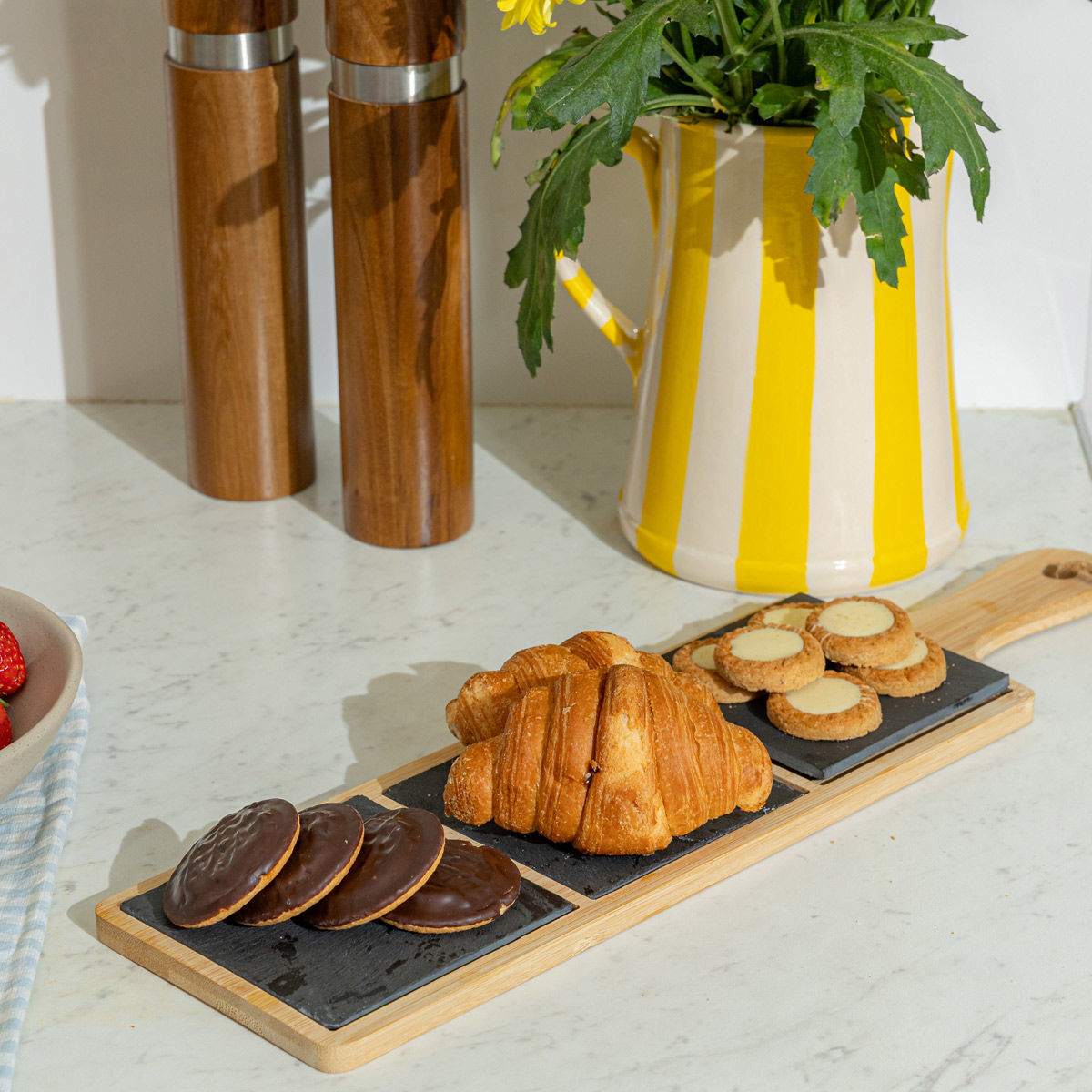 Πλατω Σερβιρισματος Σχιστολιθου 3 Θεσεων με Ξυλινη Βαση 44x12cm
