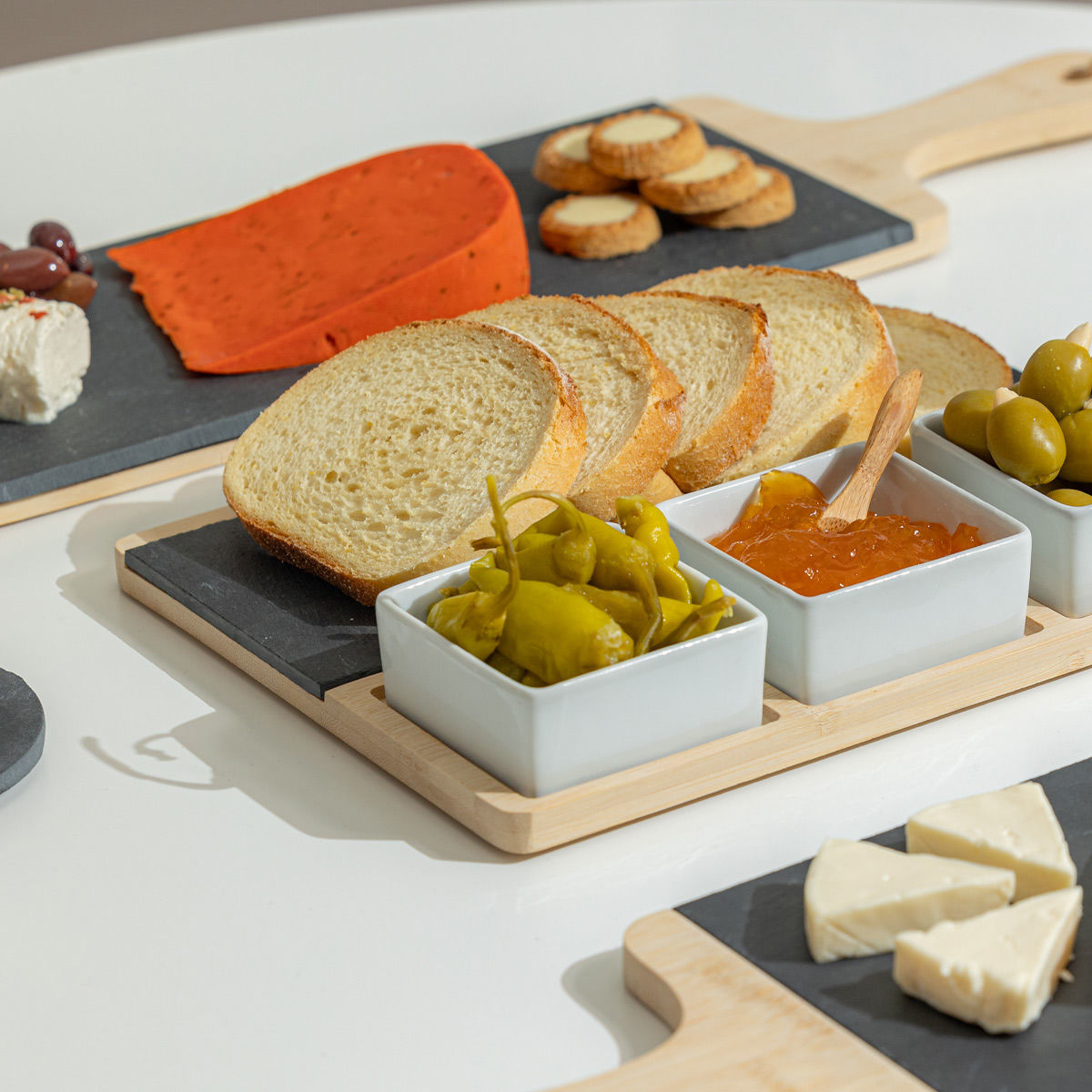 Πλατω Σερβιρισματος Σχιστολιθου με Ξυλινη Βαση και 3 Μπολ με Κουταλι 28x11cm