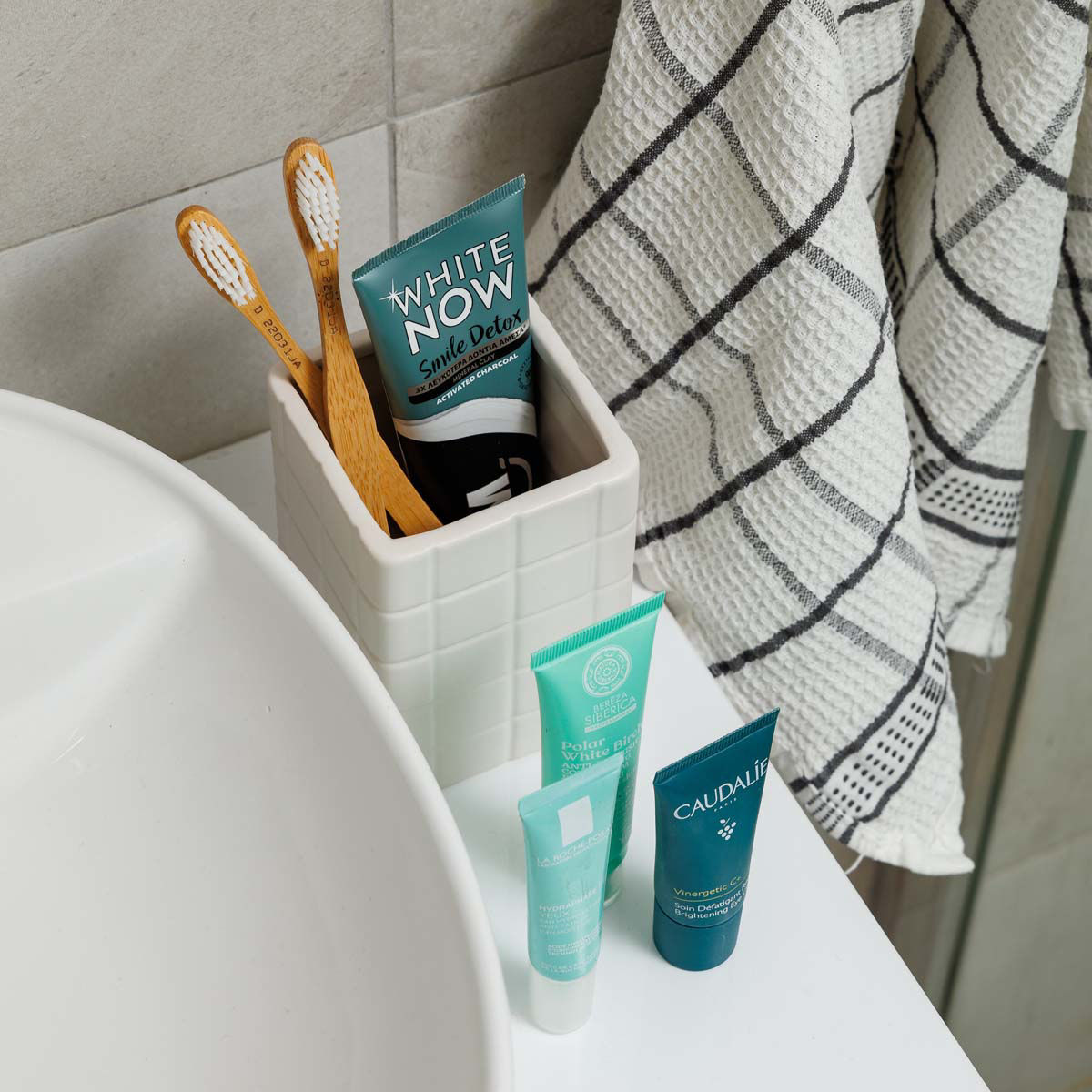 Ποτηρακι Μπανιου Tiles Κεραμικο 7.5×7.5x11cm Λευκο