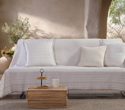 +1.html%Αυτό το ριχτάρι πολυθρόνας σε μπεζ απόχρωση με διαστάσεις 150x125cm προσφέρει μια ζεστή και κομψή αίσθηση στον χώρο σας. Το κρόσι στις άκρες του προσθέτει μια διακριτική λεπτομέρεια, καθιστώντας το ιδανικό για να καλύψει την πολυθρόνα σας ή να χρησιμοποιηθεί ως διακοσμητικό στοιχείο. Κατασκευασμένο από μαλακό ύφασμα, είναι ευχάριστο στην αφή και ιδανικό για δροσερές βραδιές, προσφέροντας άνεση και στυλ.