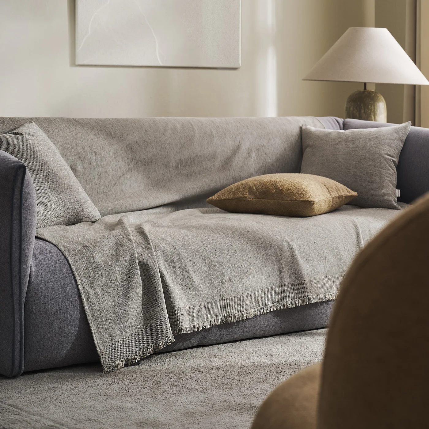 ϊ1.htmlτΡιχτάρι τετραθέσιου Valkyrie Cloud Grey με διαστάσεις 180x350cm, κατασκευασμένο από μαλακό ακρυλικό chenille νήμα με ψαθωτή πλέξη και φάσα στις δύο πλευρές. Αυτό το μονόχρωμο ριχτάρι προσφέρει απαλή αίσθηση και κομψότητα, ιδανικό για το σαλόνι σας. Είναι φτιαγμένο από 70% ακρυλικό και 30% βαμβάκι, και πλένεται στο πλυντήριο στους 30 βαθμούς χωρίς στύψιμο.