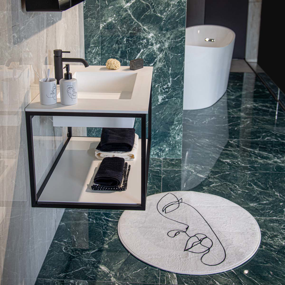 Ταπετο Μπανιου Line Art Αντιολισθητικο 80x80cm Λευκο