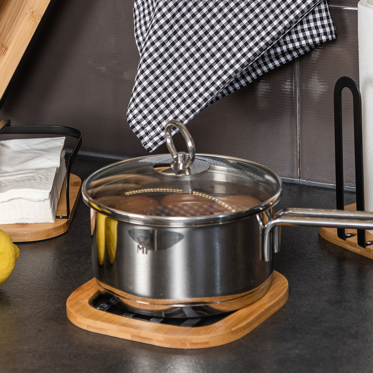 Βαση Μαγειρικου Σκευους Bamboo Essentials Meταλλικη 17x17x1cm Μαυρο